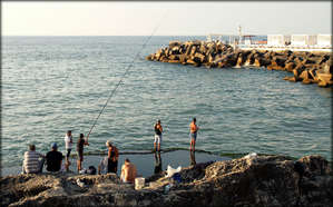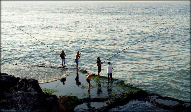 Но в один из вечеров мне удалось все-таки безопасно поснимать людей. Это было на набережной. Мужчины разных возрастов, большинство из которых подростки, прыгали с небольших скальных образований в воду. Я понимал, что вниз они могут прыгнуть, а вот на вверх, где стоял я, уже вряд ли. Вот я и осмелел:)