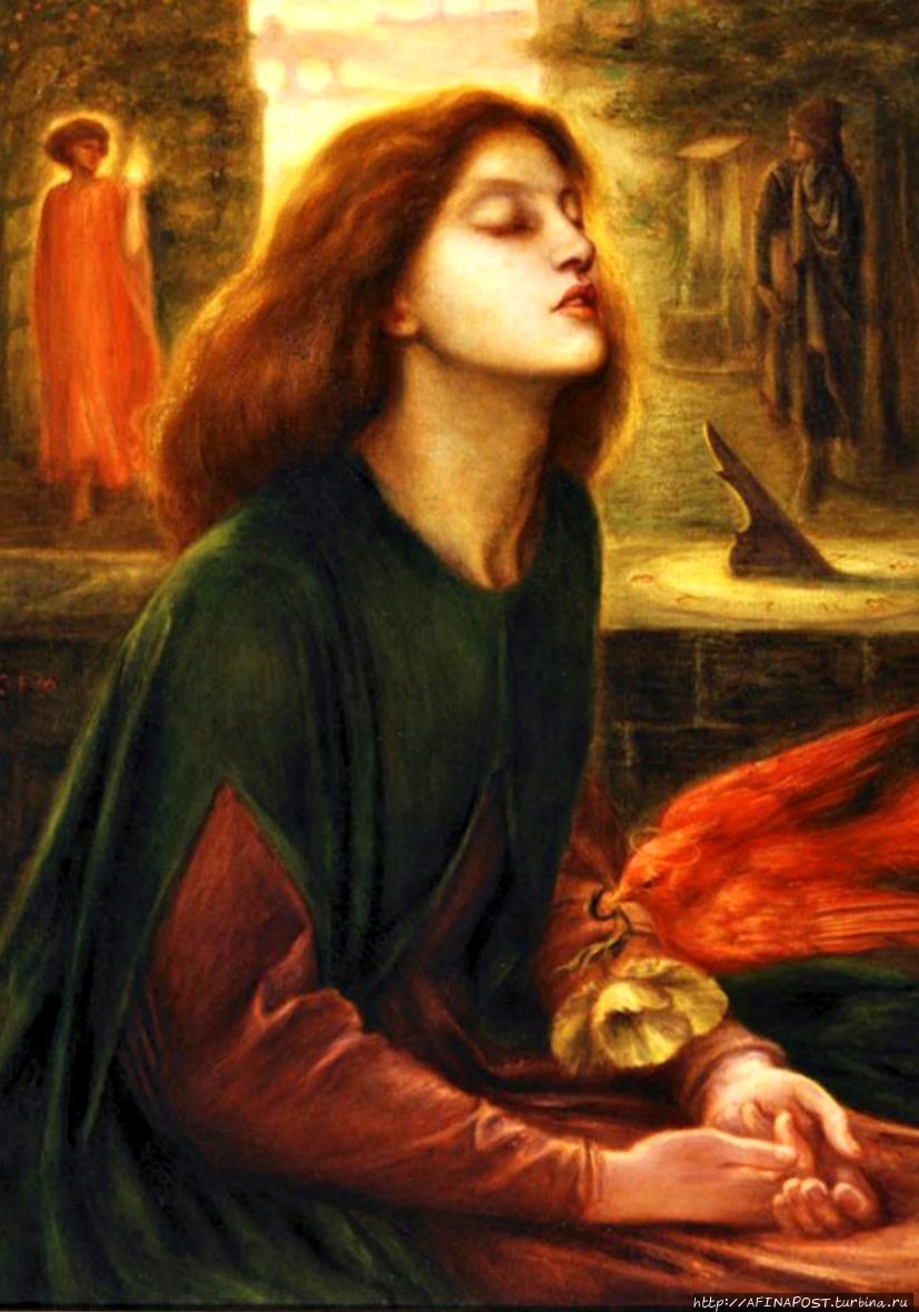 начинал в духе простоты и натурализма, свойственном всем прерафаэлитам, но позже ушёл в собственный мистический символизм. Итальянец по происхождению, Россетти любил Данте и сам был поэтом. Мистический колорит присущ многим картинам Россетти, в них прекрасно воплощена его тяга к воспеванию прекрасных дам.