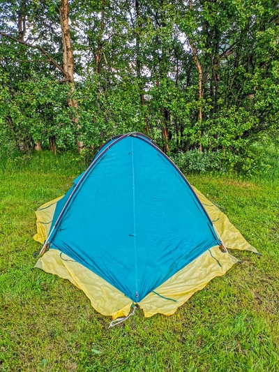 Наверное мне стоило поставить палатку на территории саамской фермы, чтобы проникнуться местной атмосферой, но палатка на лужайке возле супермаркета встала тоже хорошо.
