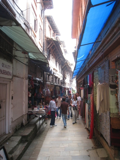 Здесь уже все подчинено торговле, все двери лавок уже открыты, только зайди и купи себе 100% пашмину (палантин), ручной работы бумагу, картины, резные алтари с индуистскими божествами, национальные наряды и пр. Узкие улочки полны всякого туристического барахла, тут же снуют юркие мотоциклисты, и надо быть очень осторожным, чтобы увертываться от них своевременно.