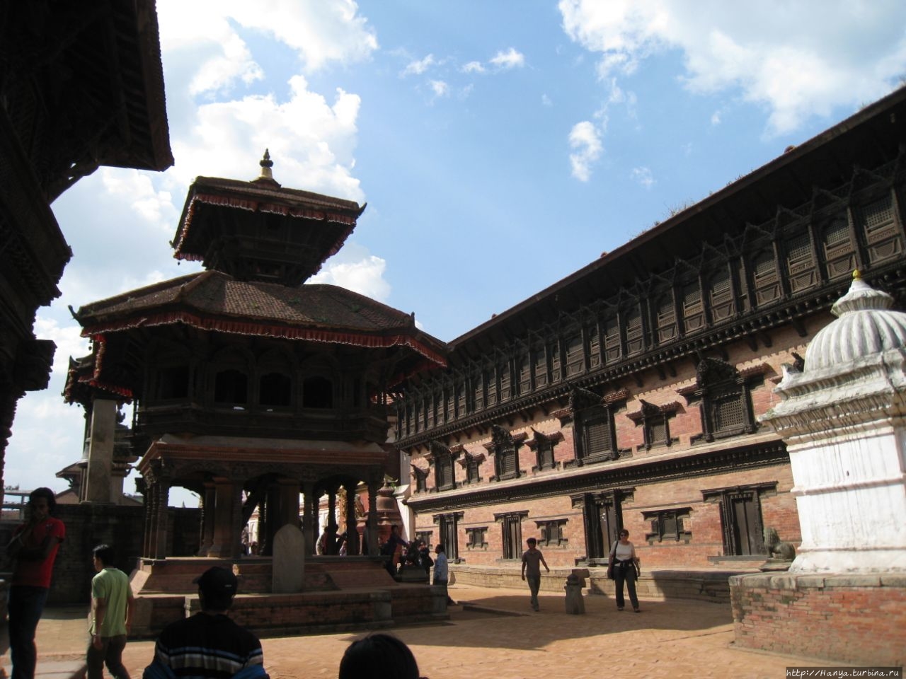 Дворец 55 резных окон Pachpanna Jhyale Durba. Ч.98), о котором я уже писала. Этот же разрушенный восьмиугольный храм (Чиасалин Мандап) был восстановлен только в 1987 — 90-х годах. Думаю, именно эти работы с использованием металлических рам, спасли этот мандап от стихии 2015 года и помогли ему пережить новый коллапс. Действительно, к счастью, он остался целым и невредимым, что говорит о качестве реставрационных работ. К слову сказать, тщательное воссоздание мандапы под руководством австрийского архитектора Гётца Хагмюллера с немецким финансированием, было приурочено, чтобы отметить государственный визит канцлера Гельмута Коля. А визит был связан еще и со свадьбой наследного принца Бирендры, стоил этот свадебный подарок Германии 100 000 дойч марок.