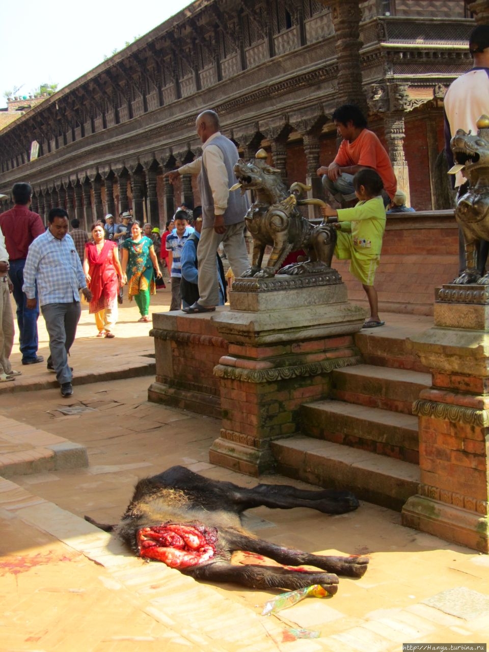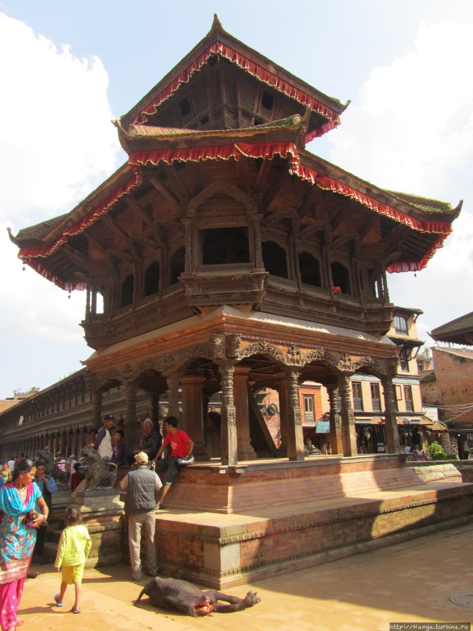 Кровавые ритуалы непальского праздника Дашаин. Ч.101), мы поднимаем голову вверх, чтобы полюбоваться очередным местным храмом — Chyasalin Mandapa. Мандапа это индийское наследие непальской архитектуры, и означает она открытый зал с колоннами или павильон для публичных ритуалов.«Это одно из самых элегантных структур в долине: с новаторскими преобразованиями от восьмиугольного здания до плавных линий черепицы, выгнутых как лепестки раскрытого лотоса».
