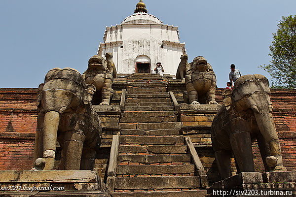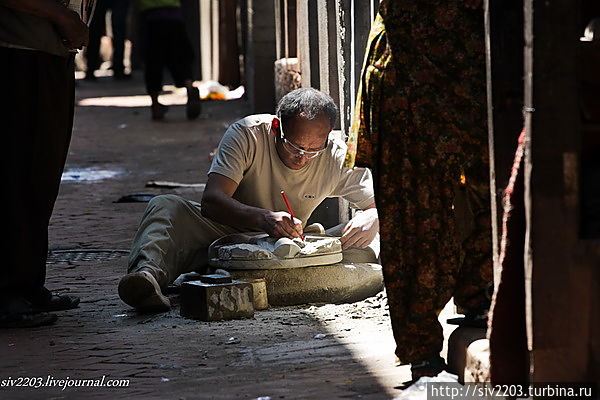 Недалеко от Катманду есть городок-сателлит Бхактапур. Его называют еще городом-ремесленником. Примечательно то, что в этом городе выложено из кирпича: дорожки, все дома построены из кирпича. Есть в нем некая атмосфера. Если бы еще за посещение не брали несусветно-драконовские цены — 15 долларов с интуриста (таких цен часто в Европе не встретишь). А так — симпатично, не более.