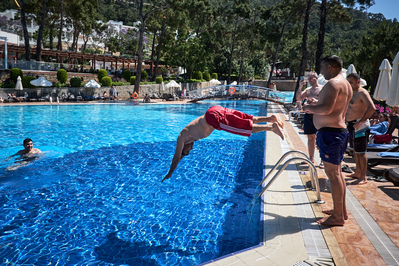 Не забыли Rixos Premium Bodrum и о детях. Для них тут целый городок развлечений, включая аквапарк. Аниматоры и опытные педагоги снимут с вас все заботы о том, чем бы еще занять свое капризное чадо. Прикрутят к интересному и развивающему действу. Тут и детский фитнес, и комната для занятий, развивающих творческие навыки, уроки готовки кексов и пицы, игровой парк, футбол, детские ярмарка и дискотека, феерический праздник воздушных шаров… Одна при этом проблема – детей бывает трудно уговорить хотя бы на время покинуть этот городок развлечений, чтобы поесть или съездить на экскурсию.