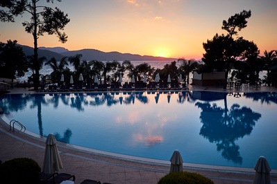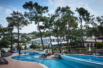 Да, это один из лучших отелей-курортов на этом побережье Эгейского моря. 187 тысяч квадратных метров цветущей территории, обустроенной с умом и беспрецедентным комфортом. Собственная береговая линия, бассейны, номера, сьюты и виллы, рестораны, бары и СПА-салон… При знакомстве устанешь ходить, все осматривая и… пробуя.