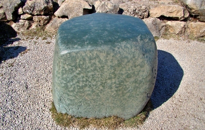 огромный камень-куб зелёного цвета. Его происхождение здесь неизвестно, но археологическая байка сложена на предположении о подарке египетского фараона к свадьбе хеттского царя...