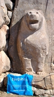У одного из львов голова была отбита еще в древности и реконструирована в 2011 году. Примечательно, что пострадавший правый лев ощутимо крупнее соседа. Эта разница в размерах, не является случайностью, а желанием изобразить льва и львицу.