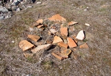Окружённый руинами одной из комнат, по центру, установлен найденный в Большом храме