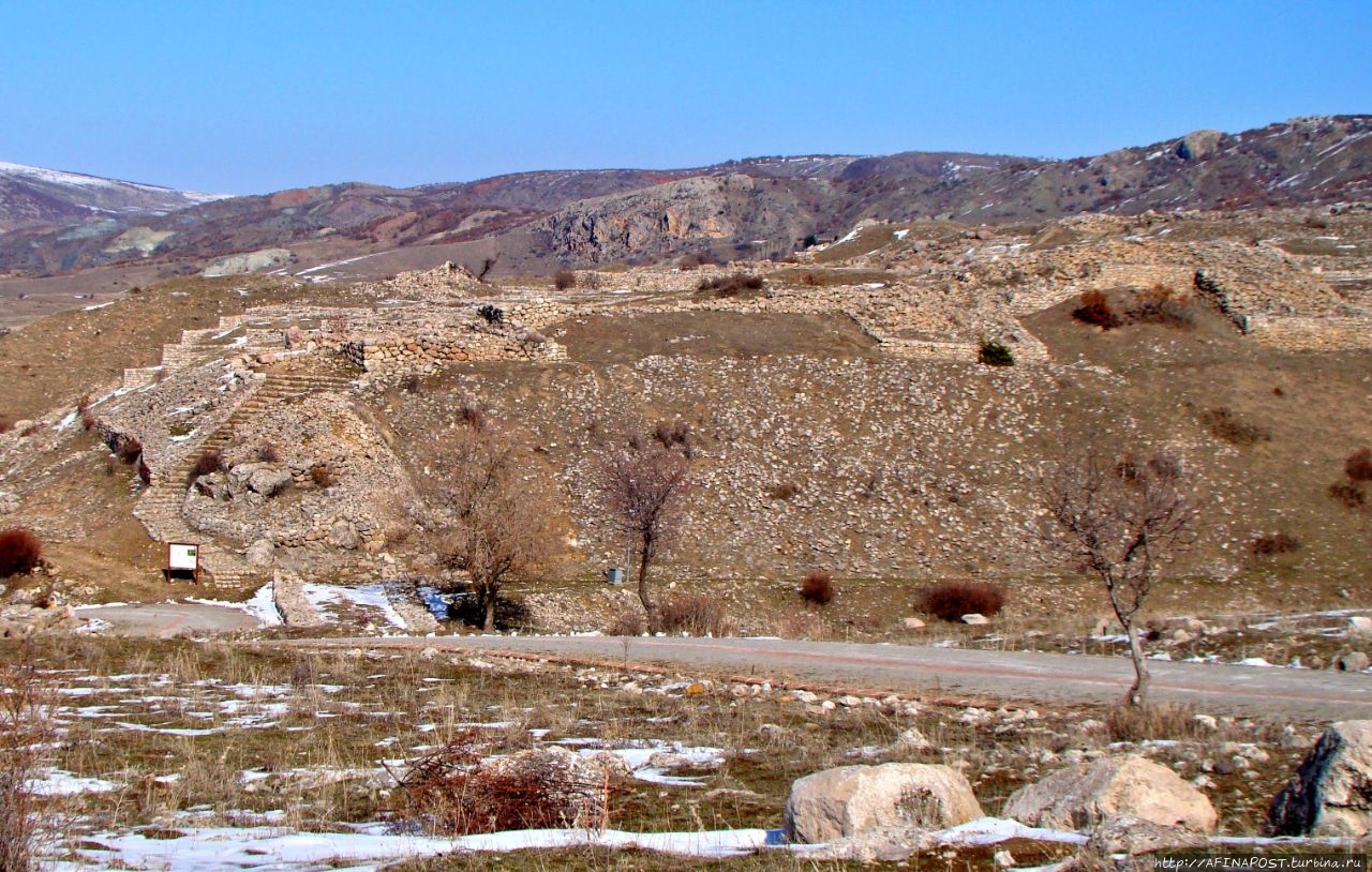 Археологический комплекс находится на горе — высота местности над уровнем моря более тысячи метров. Скалистые гребни и крепостные сооружения с юга и запада, природные обрывы с востока и севера сделали город почти неприступным для врагов.