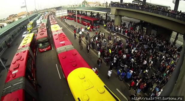 В Питере, тоже большом городе, благодаря метро можно за час — полтора добраться в любое место. А тут монотонно сидишь в этом «трансмиленио» и терпеливо ждешь своей остановки.