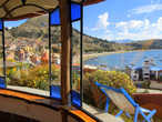 Но два дня проведенные в столице, горная болезнь и переезд забрали почти все силы и пол-дня мы посвятили отдыху в самом лучшем отеле в Боливии. Каждый номер здесь — это отдельный домик с необычным интерьером и экстерьером, с превосходными видами на озеро Титикака. Это было вознаграждение за несостоявшуюся поездку к уникальному Уюни. Такие были виды из окна нашего домика на легендарное озеро. Разве это не прекрасно?
