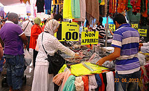 На этом рынке было забавно наблюдать за столпившими около корзин с товарами покупателями, которые дружно перебирают всю одежду, превращая ее в груду тряпок.