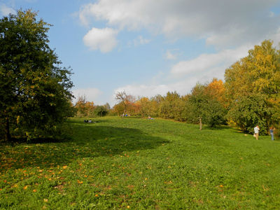 В барском саду много яблонь, здесь туристы совершенно бесплатно могут набрать себе яблок.