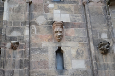 Недалеко оказался Францисканский монастырь, возведённый восемь столетий назад. Тогда же возвели мощнейшую стену вокруг него, настолько мощную, настолько тщательно укрепленную, что стоит эта стена и сегодня. Фасад самой церкви выглядит очень просто, это неоготическая перестройка 19 века. Посетить её не получилось, она была закрыта, а вот в монастырский клуатр, построенный в 14 веке, зашли, он расположен слева от церкви. Вход в него с улицы ничем не примечателен, не зная можно пройти мимо.