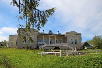 Третья усадьба, о которой я тоже хотела бы рассказать – это дворянская усадьба Хвалевское. Она расположена в селе Борисово-Судское, Бабаевский район, Вологодская область, на высоком берегу реки Суды.
