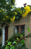 К слову сказать за мимозным сумасшествием на всю округу нисходит сумасшествие бугенвиллии. Желтый цвет сменяется всеми оттенками розового и пурпурного, цветочные пушинки превращаются в расползающиеся по стенам плющи, и только ошарашенные физиономии посетителей остаются прежними.