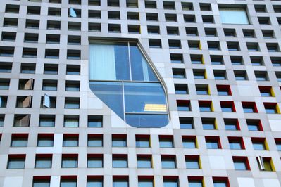 Вот в этом необычном здании находится центр изучения радиографии, а также компьютерной биологии, иначе говоря лаборатории для студентов биологического и медицинского факультетов с применением самых современных технологий. Так как в MIT делают упор именно на технологии, то скорее всего студенты здесь не столько изучают медицину и биологию, сколько роботизацию и компьютеризацию этих областей.