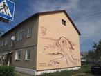 Некоторые дома оформили изображениями города, прямо как в Боровске, но в последнем интересней и больше