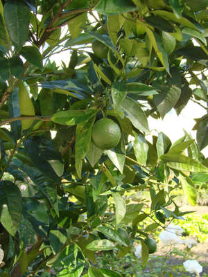 На пересечении дорожек установлены большие глиняные горшки с растущими в них лаймами.