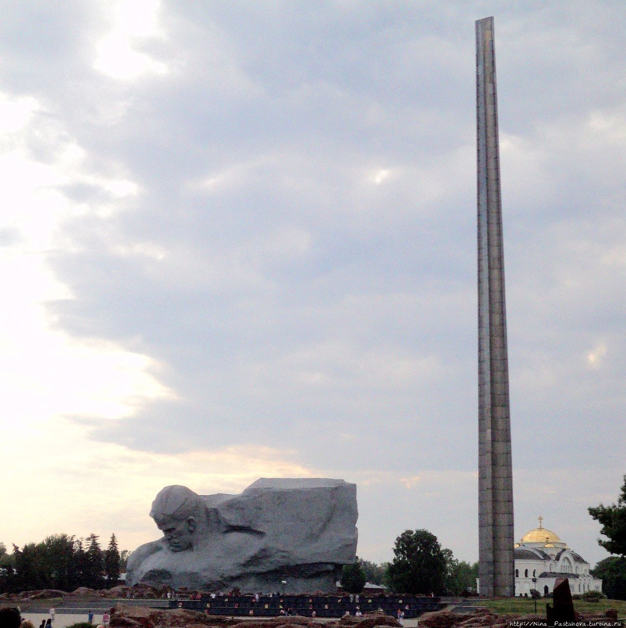Между ним и монументом идут три ряда надгробных плит с именами погибших. Сейчас под ними покоятся 1038 погибших героев и не все имена их известны. Здесь же горит Вечный огонь