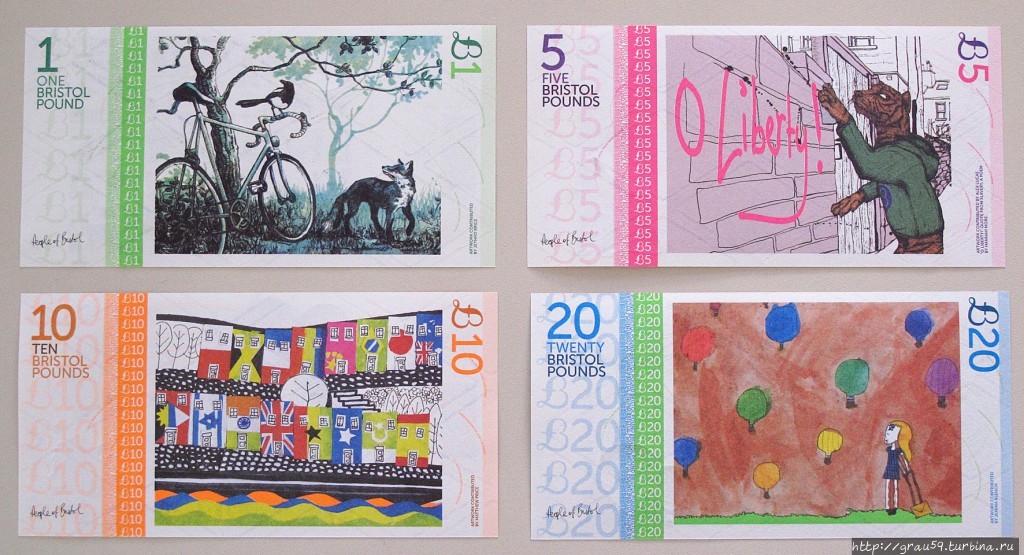 Изначально бристольские фунты были бумажные, затем появились безналичные.