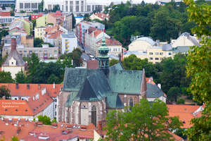 и пытаемся найти Денисовы сады. Если честно, то даже с картой и путеводителем нам это удалось не сразу. Но наше упорство было вознаграждено. С обзорной площадки открывается чудесный вид на город. Внизу под нами старый Брно и монастырский храм Вознесения Девы Марии