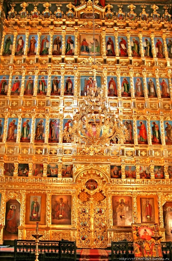 Благолепие храма подчёркивается и высоким резным вызолоченным шестиярусным иконостасом, который являлся великолепным украшением собора. Богатством самого иконостаса были иконы, написанные кистью знаменитых иконописцев.