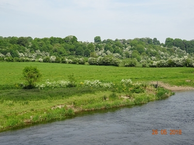 За окошком ярко-изумрудные поля, расчерченные оградками и украшенные кустами цветущего боярышника.