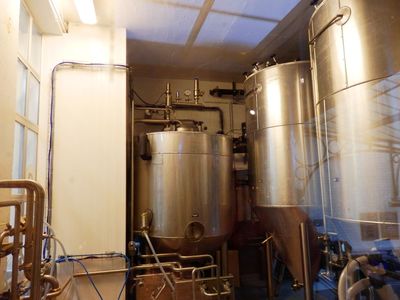 Не обязательно покупать билет, чтобы посмотреть на оборудование пивоварни, среди которых исторические дробилки для солода, поддоны для охлаждения сусла, ванны для брожения.