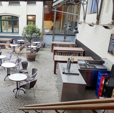 Пивная De Halve Maan расположена в историческом здании старого Брюгге, буквально в нескольких метрах от нашего отеля.