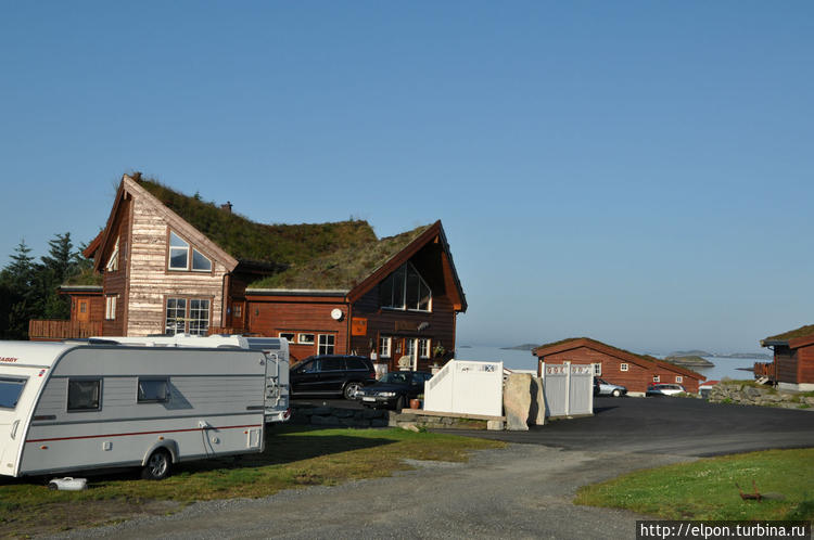 После рыбалки обошли весь кемпинг. Он очень большой и уютный. В центре у штаб-квартиры есть маленькое озеро со своим островом. На нем – останки старой шхуны, обветшавшей, выцветшей, но красноречиво повествующей всеми остатками своего такелажа о нелегкой рыбацком труде. Въезд в кемпинг охраняет морщинистый деревянный тролль. Между домиков обитают какие-то каменные фигурки – смахивающие на плоды творчества постояльцев. То тут, то там высятся большущие камни – возле каждого из них торчат водопроводные краны. Захотел воды – иди к ближайшему камню.