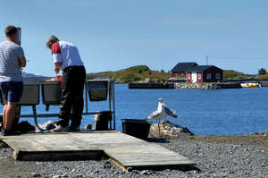 За чисткой рыбы зорко следили чайки — как только рыбак выбрасывал в море очередную требуху, они с жутким многоголосым криком бросались на неё и в мгновение ока растаскивали по своим животам. В остальное время чайки плотным частоколом сидели на береговом парапете, лишь изредка что-то выкрикивая.