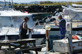 На берегу рыбаки, вернувшиеся с мелководья, начинали чистить своих рыбок.