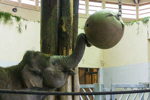 Основным развлечением для животного в его вольере является вытряхивание арахиса из большого круглого мяча с отверстием, подвешенного на верёвке. Имитация самостоятельной добычи пропитания, чтобы животное не ленилось и не толстело без дела.