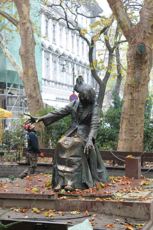 Следующая остановка будет у площади Ференца Листа справа по ходу нашего движения. Площадь представляет из себя небольшой сквер с многочисленными памятниками. Главный здесь конечно памятник Ференцу Листу. Лист изображен в длинной рясе. Этот образ точно показывает композитора образца 1865 года, когда он становился монахом. За ним арка, вершина которой отдаленно напоминает органные трубы. Чуть далее на пересечении с улицей Dohnányi Ernő стоит одинокий мужчина, опирающийся на забор. Это Радноти Миклош венгерский поэт, один из крупнейших лириков XX века.