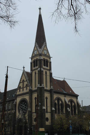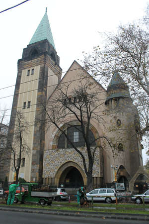 Напротив него по улице Városligeti fasor стоит Кальвинистская церковь, украшенная разноцветной плиткой в венгерском национальном стиле, причем как снаружи, так и внутри. Заканчивает образ зеленый пирамидальный купол.