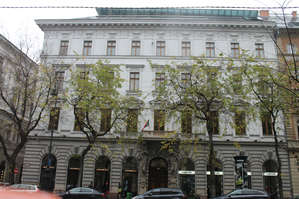 Так не спеша дошли мы до станции метро Опера. С двух сторон станцию окружают два здания, мимо которых нельзя пройти. По нечетной стороне в доме 25 находится Дворец Дрехслера с арками и башенками. На рубеже 20 века здесь на первом этаже находилось кафе Дрехслер, отсюда и название здания. Изначально это был жилой дом для Венгерского железнодорожного пенсионного фонда.