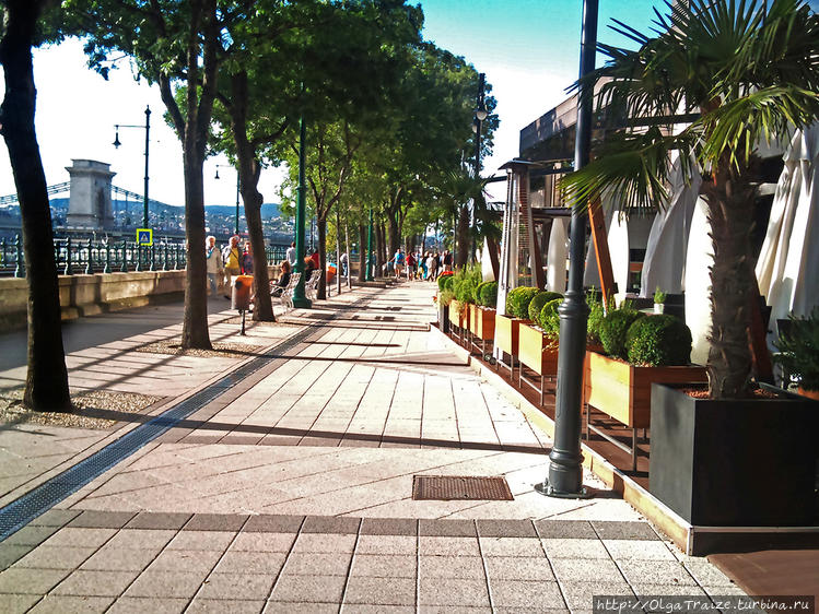 Виды на Набережной напоминают южный курортный городок, коим Будапешт, конечно же, и является. Но вот так, посреди Европы раз, и юга! И это на протяжении всей береговой линии города. Этот факт я отметила для себя как второй контраст – гуляешь ты среди европейских зданий, выходишь на Набережную, а там уже южная атмосфера.