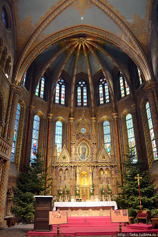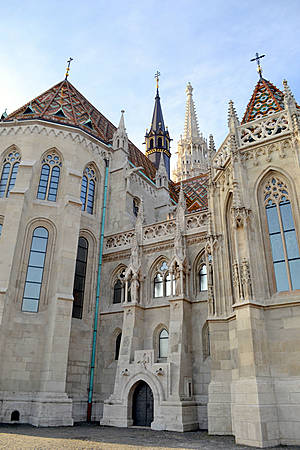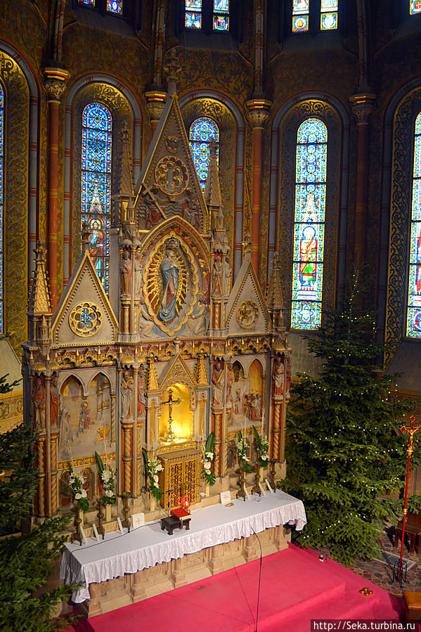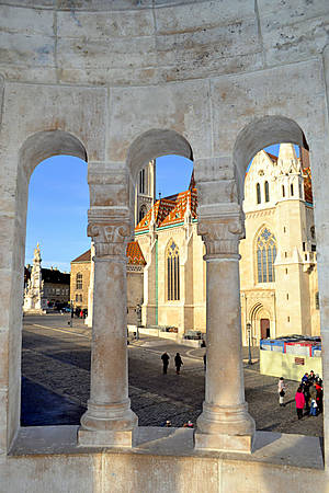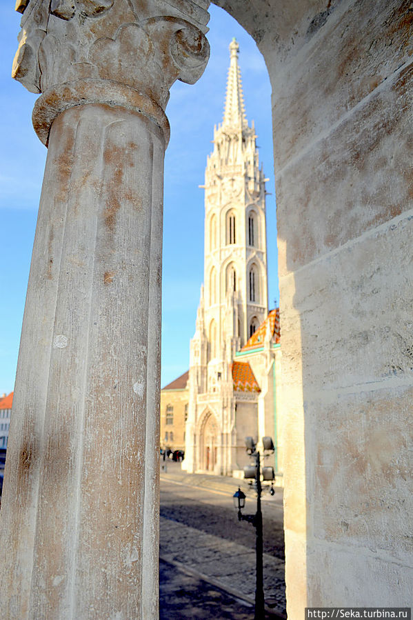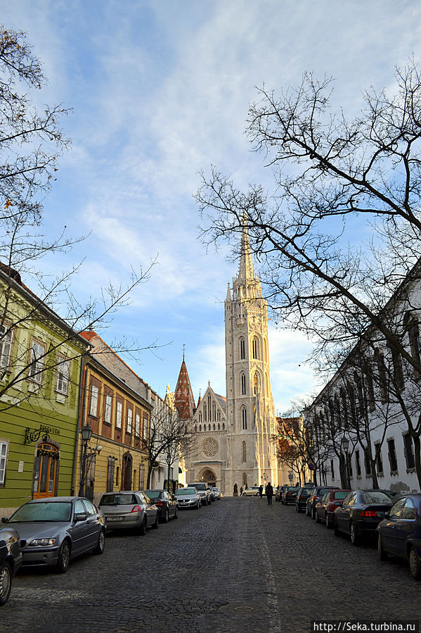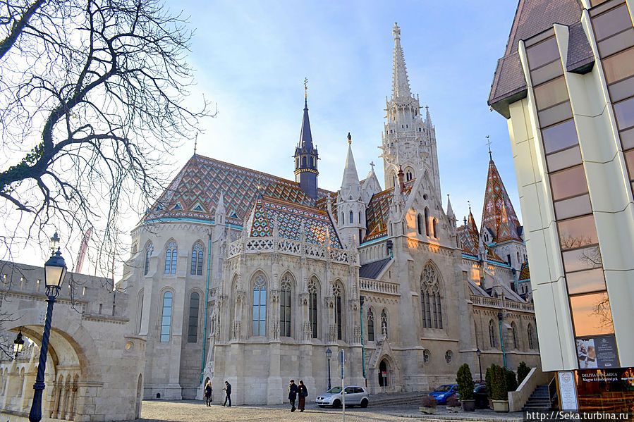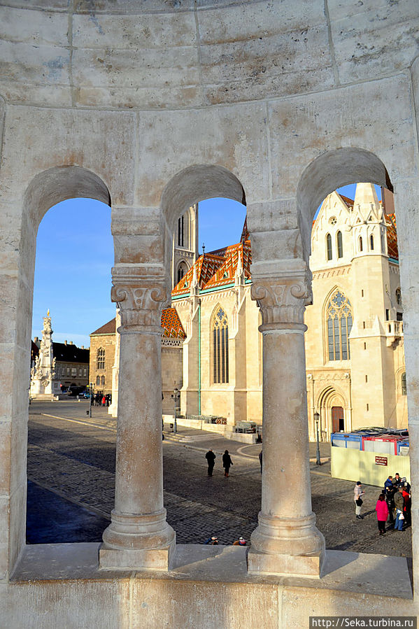 После первого посещения Будапешта в 2010 г. впечатления от Церкви Матьяша остались какими-то смазанными. То ли почти проливной дождь помешал насладиться красотой этого сооружения, то ли леса, значительно закрывавшие его фасад. Поэтому осмотр церкви как внешний так и внутренний вошел в обязательную программу по Будапешту в нынешний приезд. А когда утром 3 января стало понятно, что и погода будет просто великолепной (светило яркое солнышко), я устремилась к Рыбацкому бастиону и Церкви Матьяша.