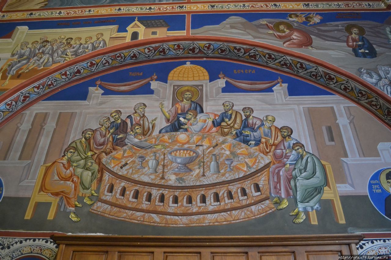 Красочные сцены из Библии, в том числе — знаменитая Тайная вечеря.