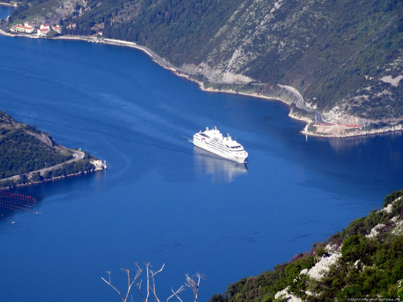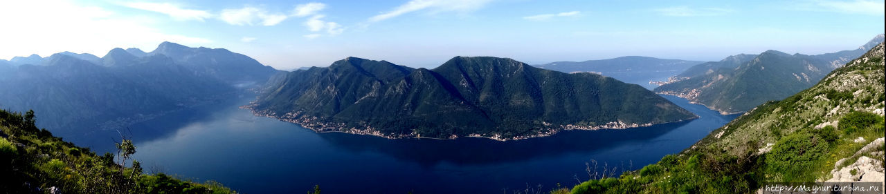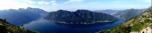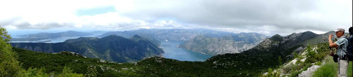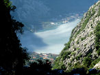 Не успели разойтись, как стена дождя сверзлась с небес и оставался нам только один выход — "добежать" 11 км по горной дороге до Негушей. В дождь! Промокшие насквозь! Но, как и не раз — повезло. Нас подобрал водитель — албанец и довез до Негушей, где мы заселились в паршивую гостиницу с неприветливым хозяином. Нам не разрешили даже высушить свои вещи.Море все же оставило нас и, после Негушей, поднявшись на хребет , мы увидели краешек Которской бухты.
