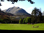 Здесь мы уже находимся на территории национального парка Ловчен, наконец — то дойдя до местечка с забавным названием "Корыто". Мы надеялись найти здесь воду, а обнаружили прекрасно оборудованное с гостиницами, ресторанами и лужайками место для массового отдыха черногорцев. Не было только доступной воды и магазинчиков.Не солоно хлебавши, проходим через эту красотень и углубляемся в парк, дороги которого и места отдыха тоже прекрасно приспособлены для неспешных прогулок и отдыха горожан.