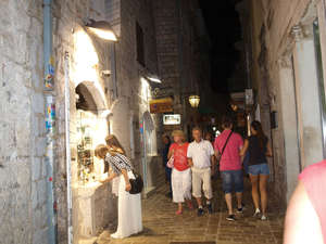 Сама старая Будва хороша ночью — фейерверки огней сыплются буквально из каждой распахнутой двери магазинов; витрины кофеен, пиццерий и прочих питейно-гастрономических заведений буквально заманивают запахами и чарующими звуками "живой" музыки. Я с трудом нашла укромное местечко для фотосессии Совет 5.Даже ночью можно выбрать наряд для предстоящего дня — от шлепанец, шляпы и купальных костюмов, до нарядов, в которых вечером можно посидеть и в ресторане. Ну и правильное решение — ведь у настоящего, не ленивого отдыхающего день расписан буквально по минутам — и когда, как не ночью, можно приодеться??? а уж везти с собой тяжеленные чемоданы нарядов,вообще дело хлопотное. Все можно купить на рынке и лучше ночью (до 24 часов)