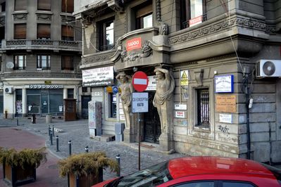 Значительную долю в уродование города вносит реклама. Она в Бухаресте повсюду. Огромные растяжки на весь квартал закрывают окна нескольким этажам сразу. Все здания утыканы яркими вывесками, которые мешают увидеть их первоначальный облик.
