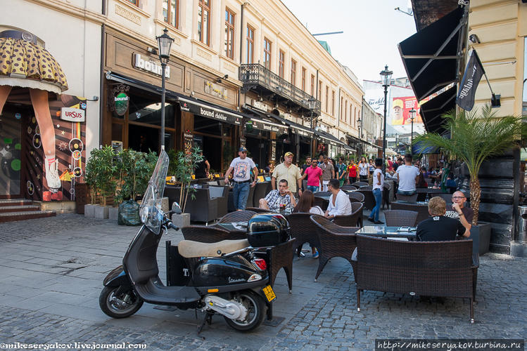 Но для меня самой основной и запоминающейся частью Бухареста – стал квартал Липскань (Lipscani) – целый квартал кафешек и пешеходных улочек, который совсем спит утром, немного оживает к обеду и неустанно гуляет и гудит с ночи до утра.
