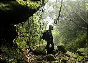 В надежде, что вулкан уснул крепким сном и не скоро проснется, мы отправляемся через озеро Булусан на другой берег и ныряем… в лес с умеренным подъемом, не забыв прихватить с собой зеленые ростки. Это — важная и ответственная часть нашего похода.
