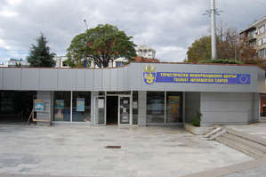От автостанции "Юг" по пешеходной улице Александровска, на улице Васила Априлова свернуть налево. Увидите подземный переход, а справа от него вход в туристический информационный центр.