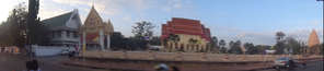 Один из самых оригинальных в Исане. Напоминает кхмерский храм, руины которых расположены вдоль границы с Камбоджей. Открыт для посещение в светлое время дня. Я гулял вокруг него на закате Типично кхмерская архитектура Панорама Ват рядом какой-то китайский храм