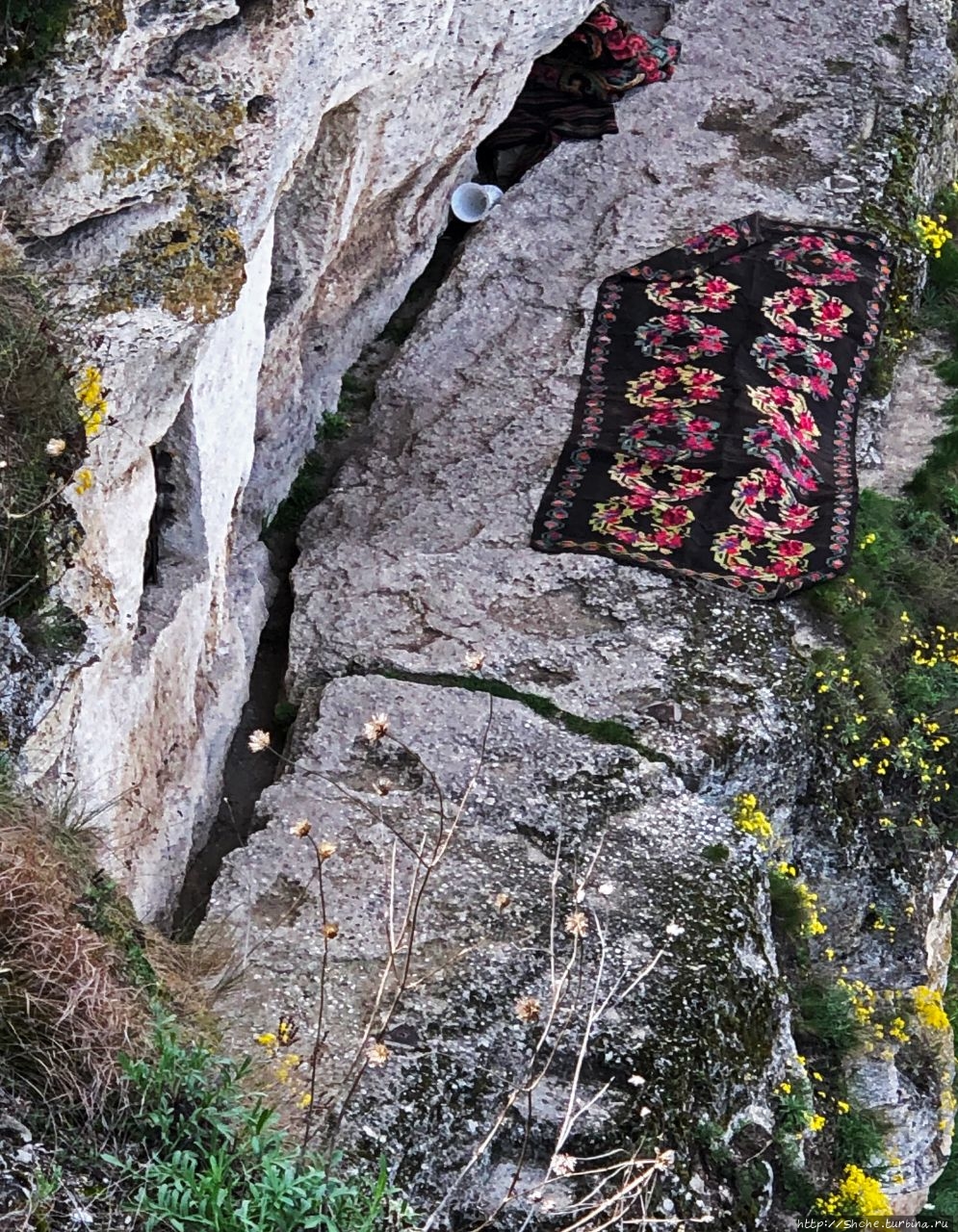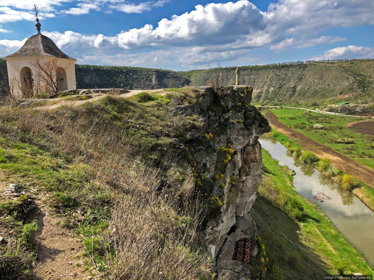 Старый Орхей. Церковь на краю живописного обрыва Кстати, прочитав кучу материалов о Старов Орхее я до сих пор не знаю, куда надо обратиться, чтобы попасть в пещерный монастырь приехавшему без экскурсовода, так что видимо, если мне удастся туда еще раз наведаться, придется вновь разбираться на месте) Тогда же мне удалось увидеть только частично эти пещеры с высоты. Там еще на каменном балконе лежал ковер, уж не знаю с какой целью, вряд ли просто сушился на солнышке.