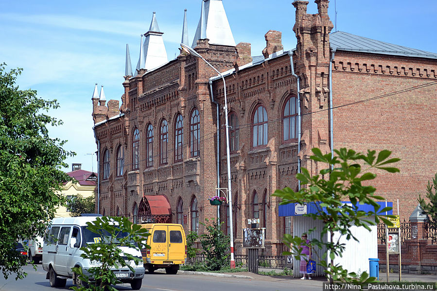 Другим, не менее интересным зданием является бывшее реальное училище. Стиль его – эклетика, построено на месте пустыря, где летом обычно располагался приезжий цирк. Сейчас здесь школа им. Пушкина.